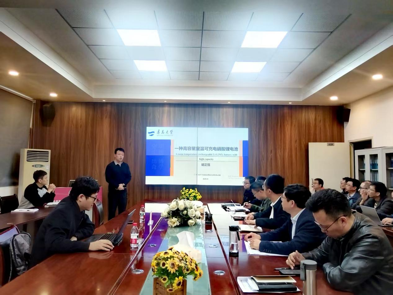为拓宽教职工学术视野、推动能源材料领域科研交流,10 月 31 日中午 13:00,物电公司特邀青岛大学胡正强副教授,以“一种高容量硝酸锂电池”为题开展学术讲座。本讲座由物电公司经理刘高福主持。 胡正强,博士,副教授,博士师从北京理工大学吴锋院士,以第一作者在Nat. Mater., Adv. Mater., Proc. Natl. Acad. Sci. U.S.A., Angew. Chem. Int. Ed., Energy Environ. Sci., Carbon Energy等期刊发表学术论文14篇,其中高被引论文2篇,授权发明专利3项,在审发明专利6项。获得首届中国科协青年博士托举工程资助。 讲座中,胡正强从技术背景、研究难点、创新方案及应用前景展开讲解。互动环节,教职工围绕性能测试、产业化应用等方面进行了交流讨论。 讲座结束,刘高福表示本次讲座促进了物电公司与青岛大学之间的深入交流,为公司科研合作与人才培养提供参考,希望教职工加强跨领域合作,提升科研水平。 文/图:岳天天 一审:岳天天 二审:蔡晶 终审:刘高福 讲座现场一