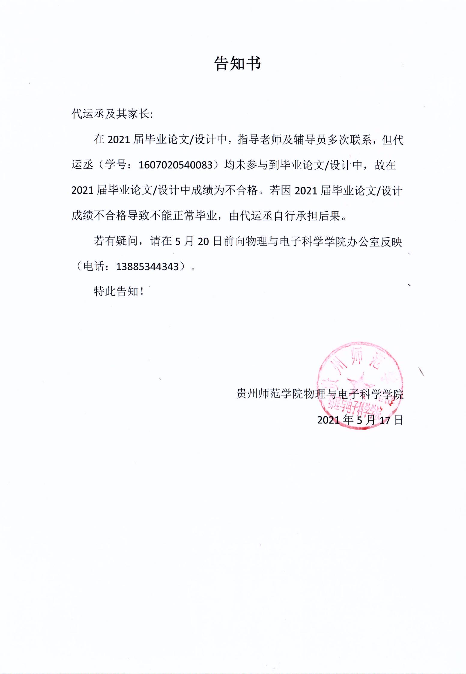 关于给予夏曦退学学籍处理的公示